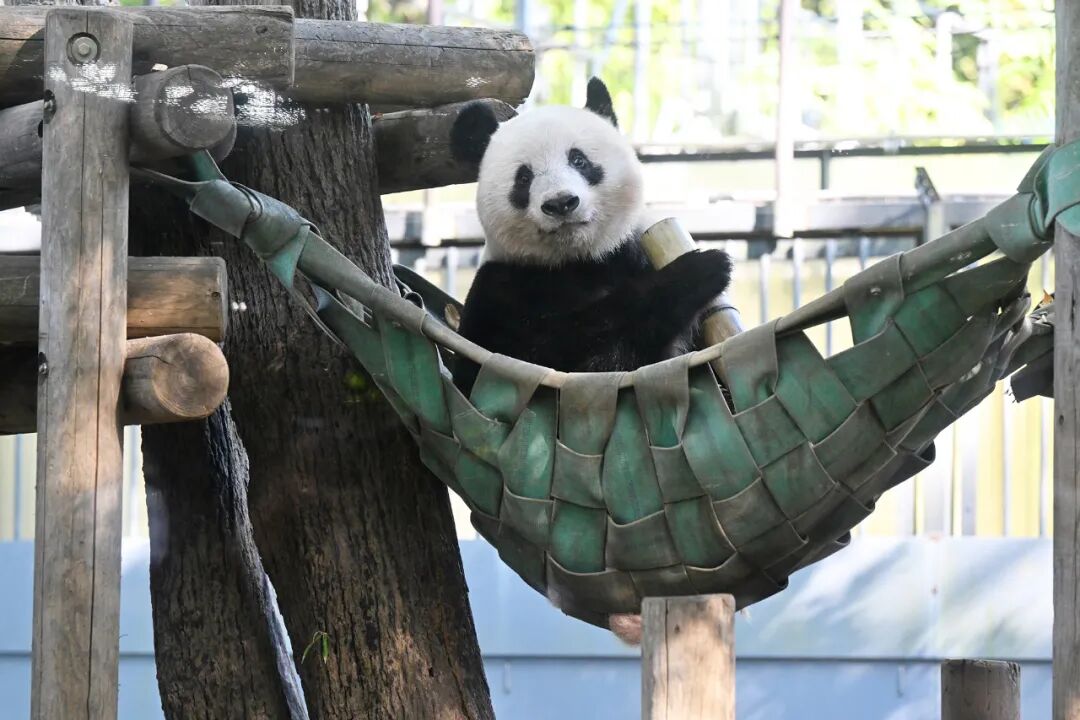 香香在“香吊床”中休息(摄影:高氏贵博)